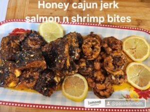 Honey Cajun Jerk Salmon & Shrimp Bites
