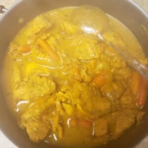 The chicken is marinated, then simmered with onions, garlic, Scotch bonnet pepper, and carrots in a savory, buttery curry sauce that’s both hearty and satisfying. Fresh thyme and rosemary add depth, while the curry creates that signature island flavor we all love.